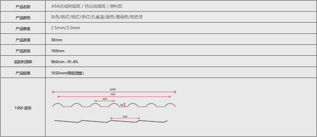 ASA合成樹脂瓦經(jīng)國家化學(xué)建筑材料測試中心檢測,在支撐跨度660mm的情況下,加載負(fù)荷150kg.瓦不會產(chǎn)生裂痕和損壞。